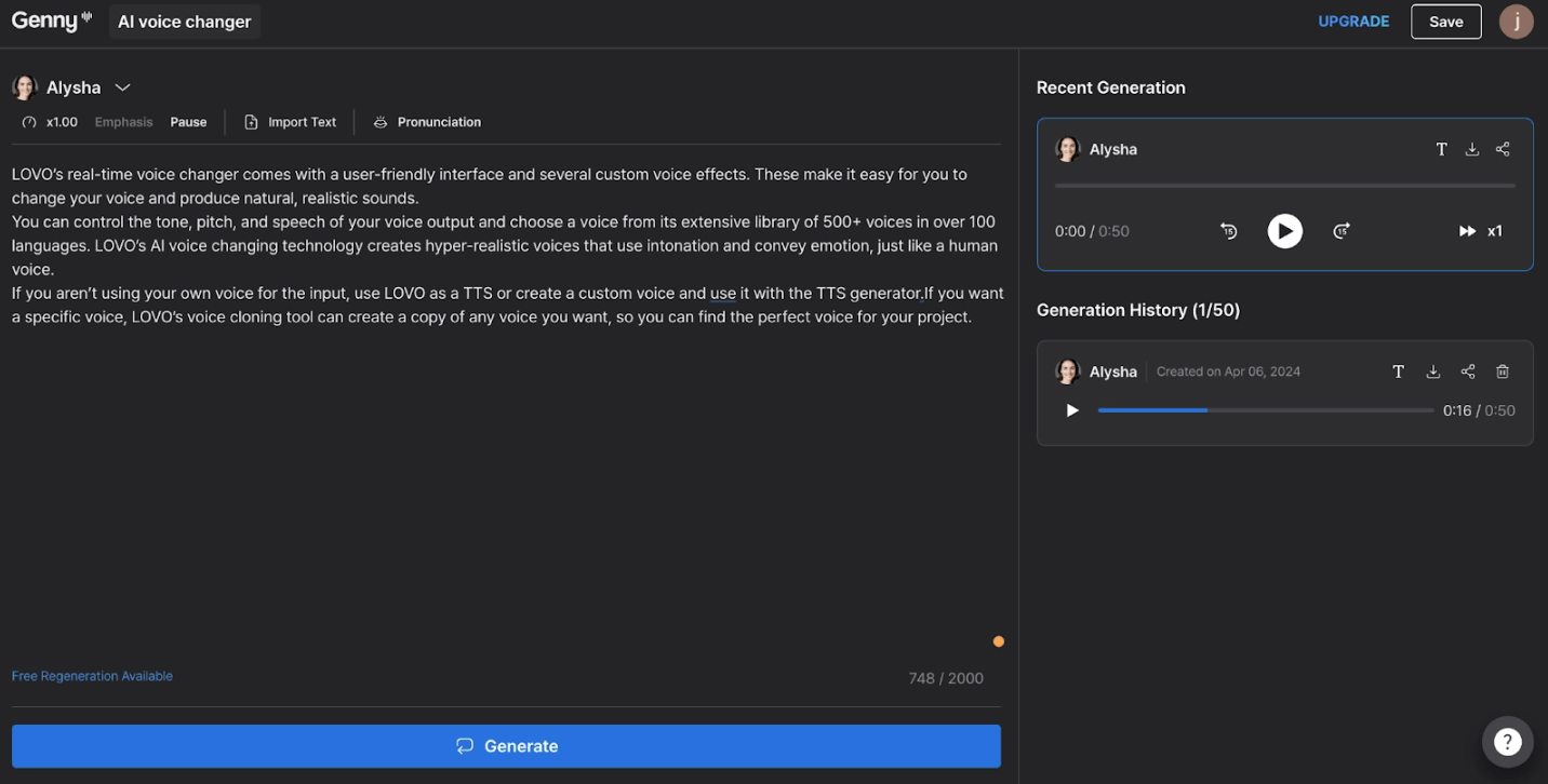 LOVOAI是一款及时变声器免费版,加强声音生成的多样性和矫捷性。将语音录音上传到该平台后,此中该声音模子目前已包罗御姐音、青年音、少女音、你能够编纂这个文本以添加沉音、搁浅和其他自定义设置。支撑语音的调制和优化,进修更多风趣的学问!仍是想正在曲播时将本人的声音变成女声,您可以或许快速制做一个或多个声音克隆,如语音合成、视频配音或逛戏脚色表演。转换为对应的ai声音。朗读后再生成天然流利的声音。