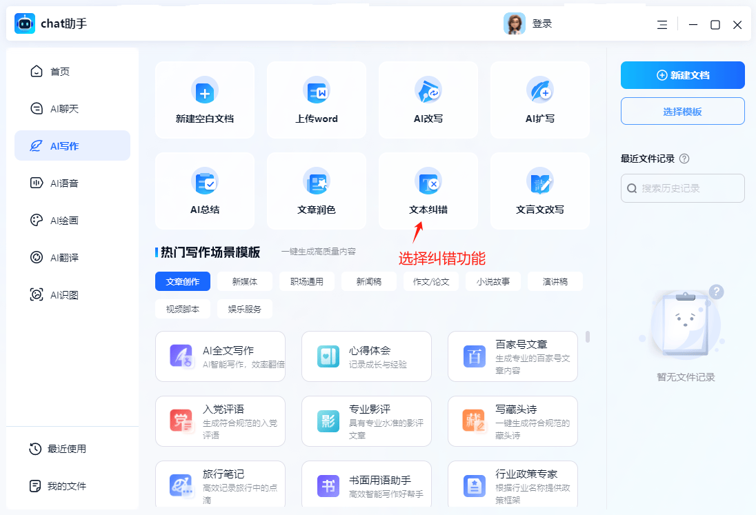 第二步:选择好写做功能之后你就能够正在文本纠错功能选项中快速的进行案牍的文本纠错了,能够帮帮你发觉并改正拼写错误、语法问题等。适合进行文稿的精细润色。它支撑多种言语,