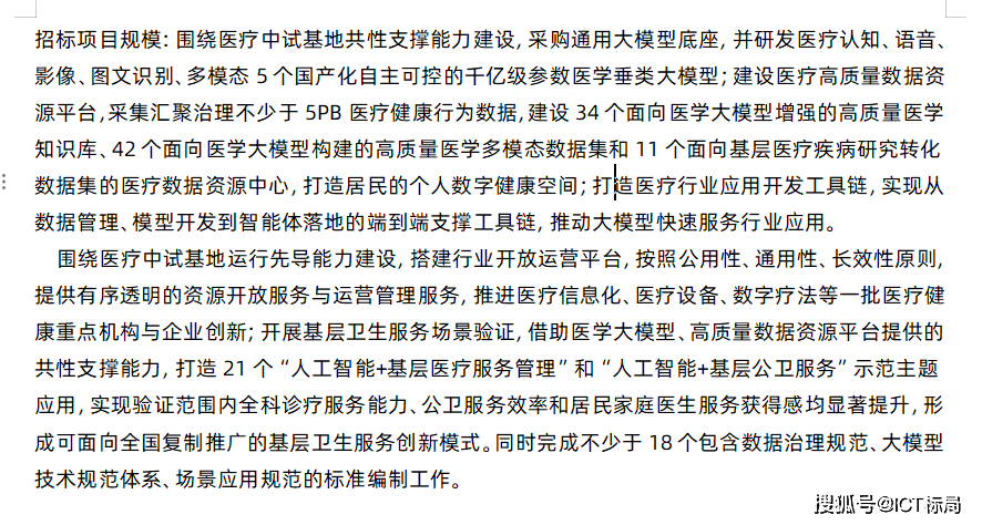 建立5PB级医疗数据资本平台,项目名称:国度人工智能使用中试(医疗范畴下层卫生办事标的目的)项目软件办事近日,此中提出结构扶植一批国度人工智能使用中试,